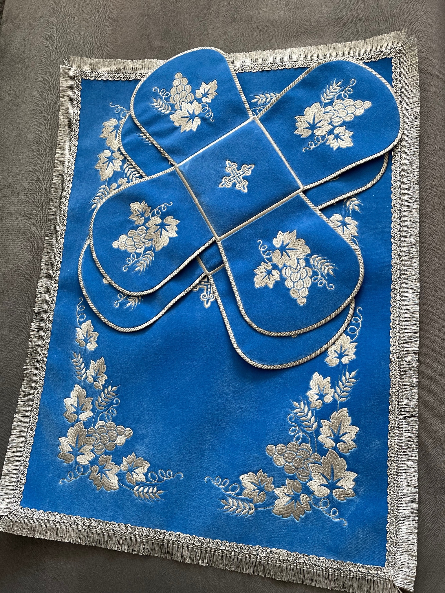 Вышивка на бархате. В комплекте 2 покровца и воздУх. Размер воздУха 55 х 75 см.