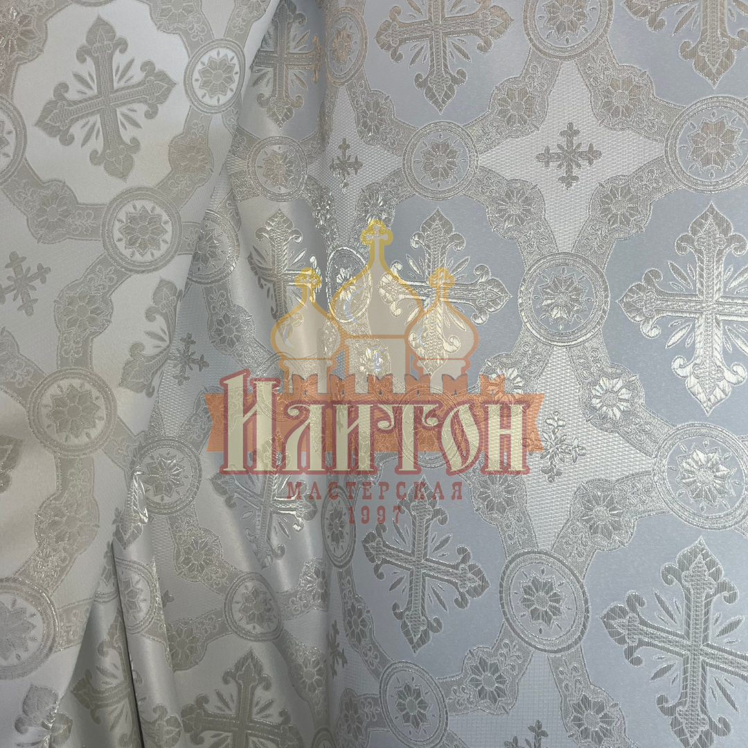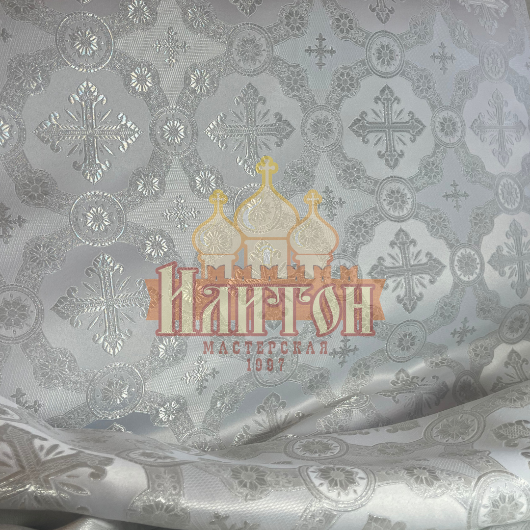 Парча "Гуслица" белая с серебром.