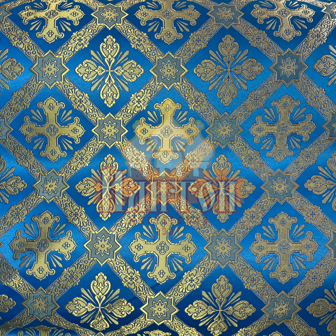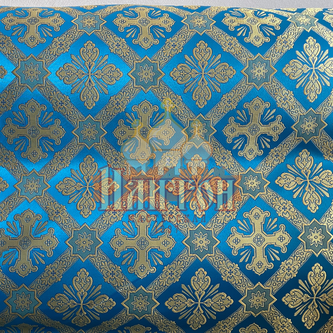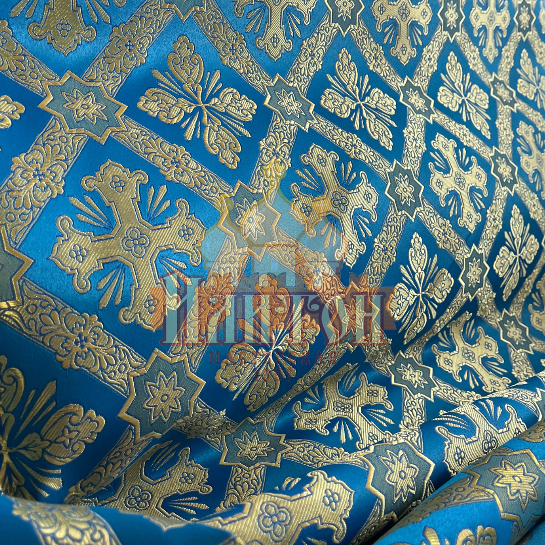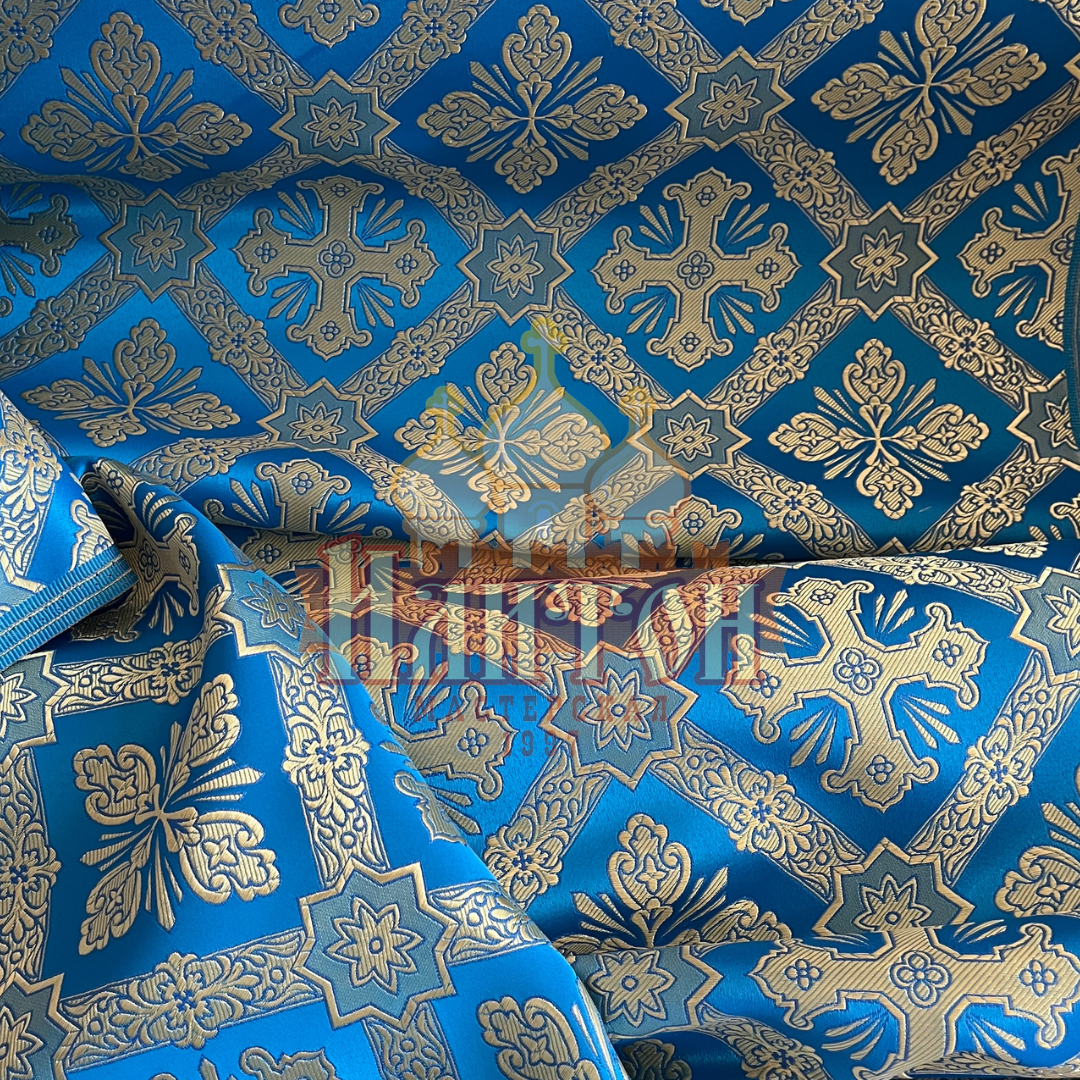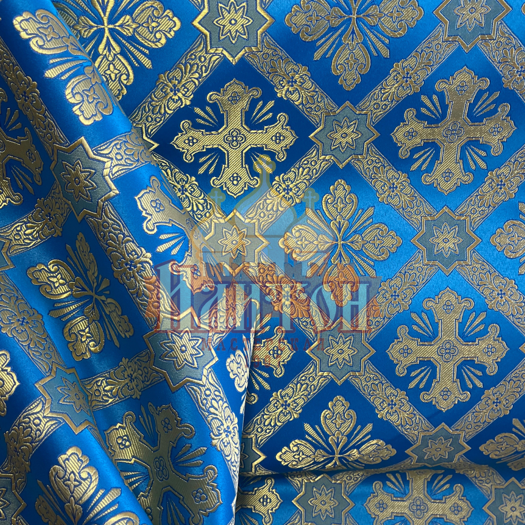 Шёлк "Канон" голубой с золотом.