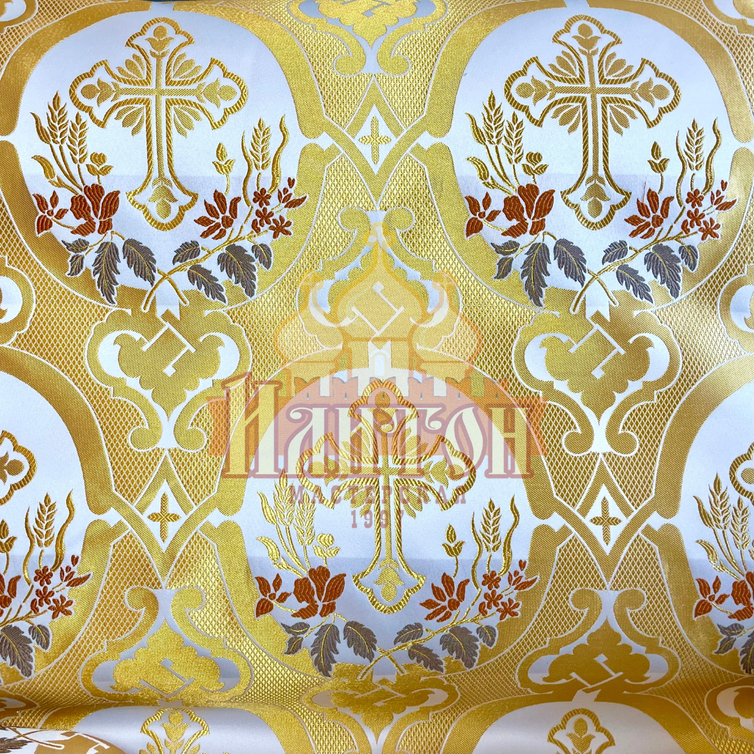 Шёлк Павлово-Посадский белый с золотом арт. С718-5523.