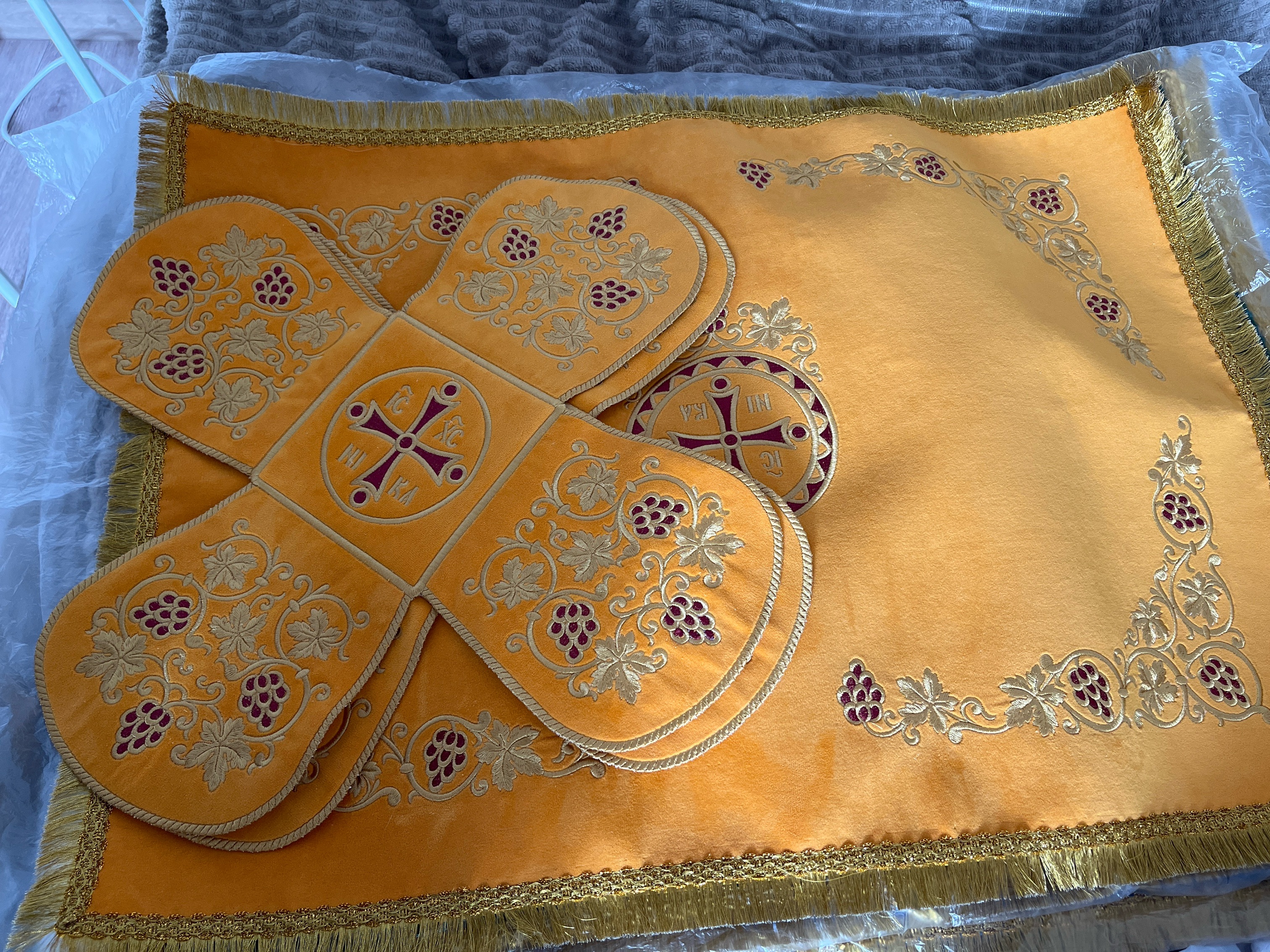 Вышивка на бархате. В комплекте 2 покровца и воздУх. Размер воздУха 55 х 75 см.
